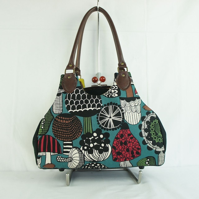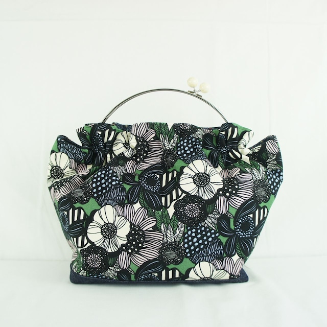 この度は、がま口工房志をんの作品をご覧いただき、誠にありがとうございます。 ◆特徴 あおりポケット部分にプリント生地を使用した、お洒落なデザインのあおりがま口バッグ」です。 長財布(最大22cm)やスマートフォンもすっきりと収まり、普段使いにぴったりです。 ◆商品仕様 ・あおりポケット部分:混麻綿生地 ・本体素材:8号帆布 ・内布:綿生地 ・ポケット:内側に2室あり ・口金:24cm(Fe+メッキ) ・持ち手:合皮 ・サイズ:横幅34cm × 高さ20cm × マチ15cm(ゲンコ玉含まず・最大部のおおよその寸法) ・重さ:約550g ・底板:ベルボーレン(ポリプロピレン) 厚み1.5mmが付きます。 ◆おすすめポイント ・大きく口が開き中身全体が見やすく取り出しやすい、また間口が大きいので収納物も放り込むだけでのアバウトな使い方にもぴったりです。 ・底布には、汚れや傷に強いデニム生地を使用し、底鋲が4点打ってあります。 ◆作り手からのメッセージ がま口が大好きで、ひとつひとつ心を込めて手作りしています。 手作りならではの風合いや、作品ごとの個性を楽しんでいただければ幸いです。 作品を通して、素敵なお客様とのご縁が生まれることを心より楽しみにしております。 がま口に、あなたの夢をたくさん詰めてください。 ※ご質問やオーダーメイドのご相談など、お気軽にお問い合わせください。 ◆ご購入後の修理対応に関して ▪商品到着後 15日以内の初期不良につきましては、口金の破損や糸のほつれなど通常使用が困難な場合に限り、無償で修理を承ります。 ▪商品到着から15日を過ぎた場合は、修理内容によっては有償となる場合がございますが、できる限り対応させていただきます。 ▪到着から15日以降の修理をご依頼いただく際の往復の送料はお客様のご負担となります。 ▪経年変化による色の変化や傷、使用による風合いの変化につきましては、修理や返品の対象外とさせていただきます。あらかじめご了承ください。 ◆購入の際の注意点 ・この作品は店舗等でで同時販売しています。そのためご購入のタイミングによっては売り切れとなる場合がありますので予めご了承ください。 ・基本的にノークレーム・ノーリターンでお願い致します。 ・ご注文に際して気になる点がありましたら、予めお気軽にお問い合わせください。 ・がま口の口金は、金属及び金属メッキ品を使用しております。金属アレルギーをお持ちの方はご遠慮ください。 ・がま口の口金部分は金属ですので、メーカーでの成形時のキズや口金はめ込み時のこまかいキズがある場合があります。 ・撮影環境やお客様のブラウザ設定等により、写真の色合いは多少なりとも実物と異なる場合ございます。ご了承ください。 ・接着剤等を使用しているため洗濯はできません。