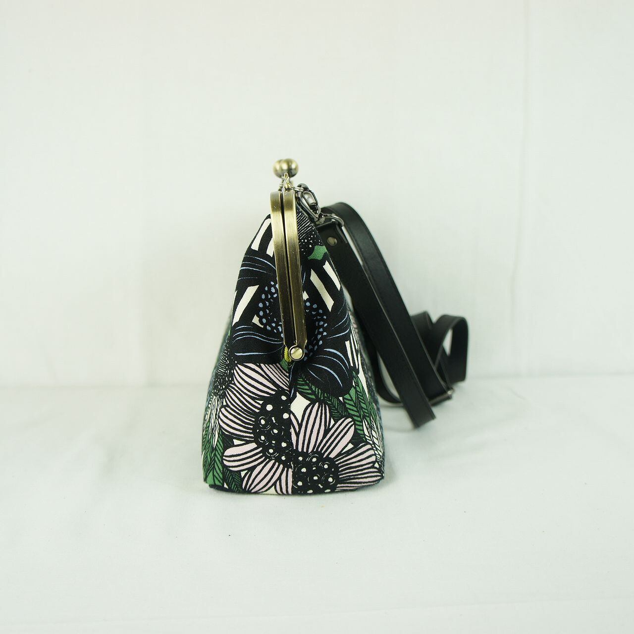 コンパクトながら、24cmの口金を使用したショルダーバッグです。